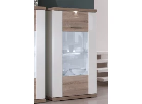 Široká vitrína Caracas typ 22, dub/biely lesk, s osvetlením