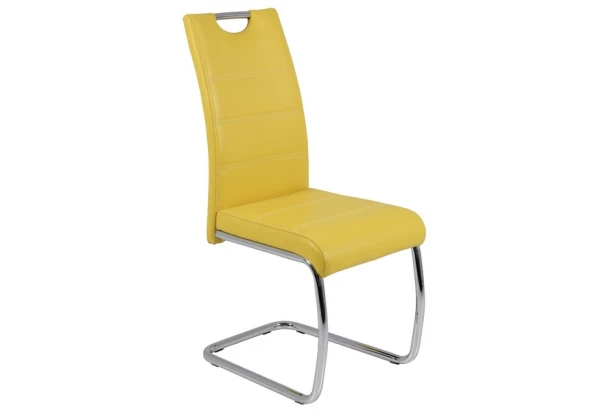 Moderný zaoblený dizajn, chrómovo lesklá konštrukcia s praktickým madlom a komfortné sedák potiahnutý ekokožou v žltej farbe.