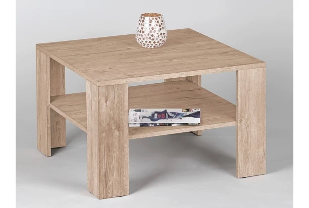 Univerzálny štvorcový stolík nájde svoje miesto v priestore každej obývacej izby. Stabilnú konštrukciu dopĺňa praktická odkladacia polica. V dekore dub san remo.