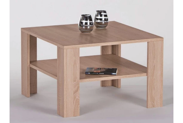 Univerzálny štvorcový stolík nájde svoje miesto v priestore každej obývacej izby. Stabilnú konštrukciu dopĺňa praktická odkladacia polica. V dekore dub sonoma.