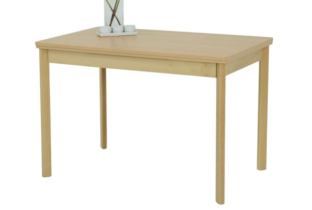 Klasický jedálenský stôl má masívne drevené nohy a jedálenský dosku o ploche 90×65 cm, ktorú možno navyše rozložiť. Vyrobený v dekore buk.
