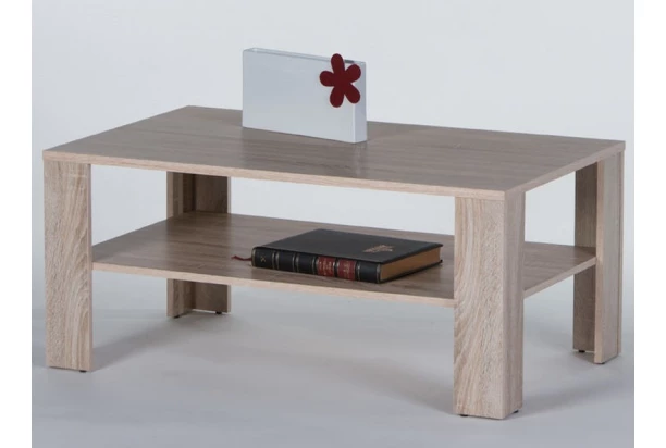 Univerzálny obdĺžnikový stolík v dekore dub sonoma nájde svoje miesto v priestore každej obývacej izby. Stabilnú konštrukciu dopĺňa praktická odkladacia polica.