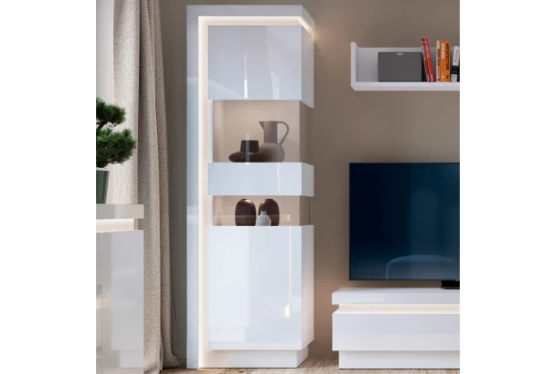 Vysoká vitrína Lyon, biela lesk, s osvetlením, pravá