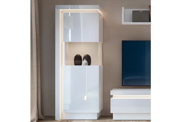 Nízka vitrína Lyon, biely lesk, s osvetlením, pravá