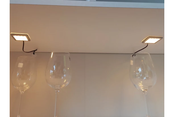 Bodové LED osvetlenie v sete obsahuje 2 ks podhľadového svetla na nasvietenie vnútorného priestoru vitrín alebo políc. Farba svetla teplá biela.