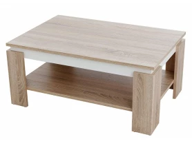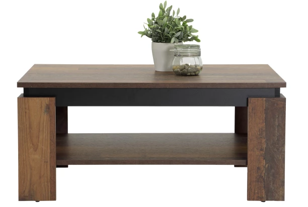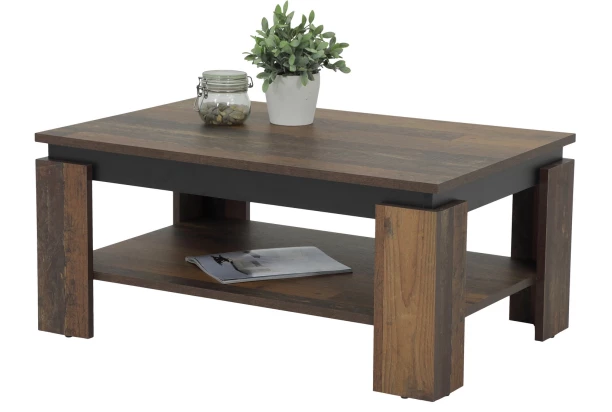 Stabilný konferenčný stolík vo vintage optike drevených lát má kontrastné čierne orámovanie, ktoré dodáva stolíku zaujímavú optiku. Oceníte aj priestrannú odkladaciu priehradku v dolnej časti.