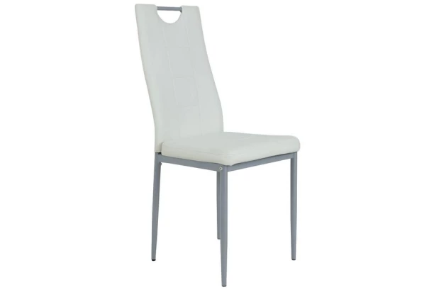 Jedálenská stolička v kombinácii kovu a bielej ekokože má dekoratívne prešité operadlo a hodí sa do každej modernej kuchyne či jedálne.