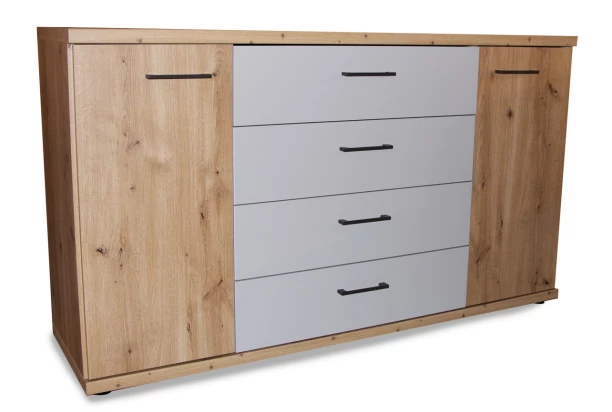 Široká komoda Kanada, 149 cm, dub bianco/šedá