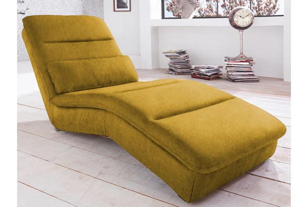 Štýlové relaxačné ležadlo. Zaoblený tvar kopírujúci krivky tela zaisťuje maximálne pohodlie pri odpočinku alebo pri sledovaní televízie. Poťah jemne štruktúrovaný horčicovo žltý odtieň.