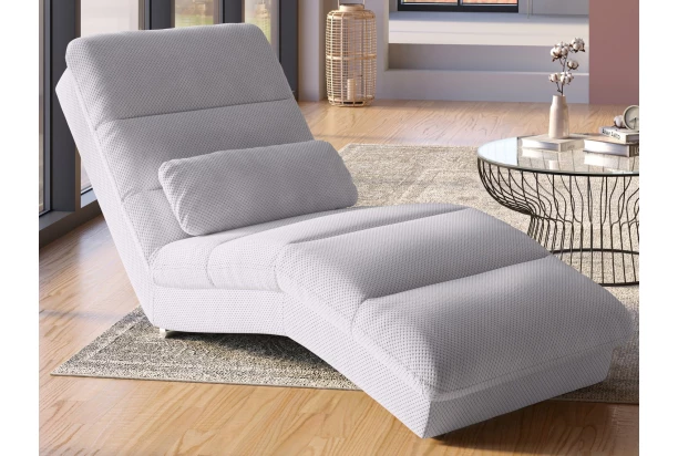 Štýlové relaxačné lehátko. Zaoblený tvar kopírujúci krivky tela zaisťuje maximálne pohodlie pri odpočinku alebo pri sledovaní televízie. Očalúnené mäkkou látkou so zaujímavou štruktúrou vo farbe svetlo šedá, ktorá zútulní váš domov.