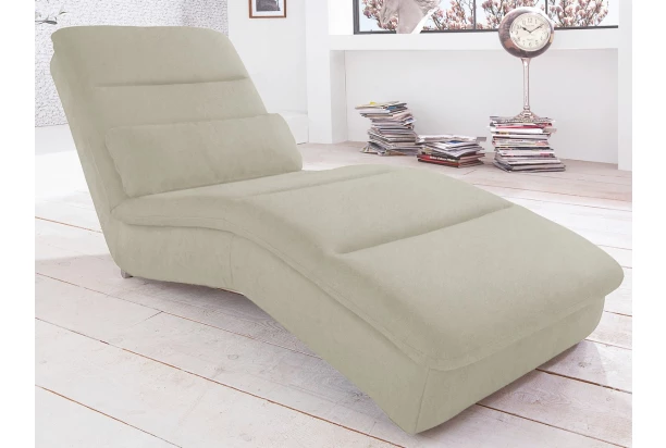 Štýlové relaxačné ležadlo. Zaoblený tvar kopírujúci krivky tela zaisťuje maximálne pohodlie pri odpočinku, alebo pri sledovaní televízie. Poťah v jemne štruktúrovanej látke vo farbe béžová.