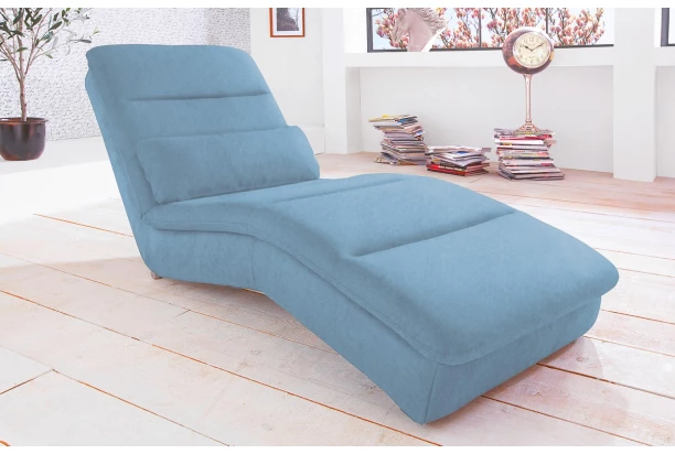 Štýlové relaxačné ležadlo. Zaoblený tvar kopírujúci krivky tela zaisťuje maximálne pohodlie pri odpočinku alebo pri sledovaní televízie. Poťah v jemne štruktúrovanej látke v odtieni azúrovo modrá.