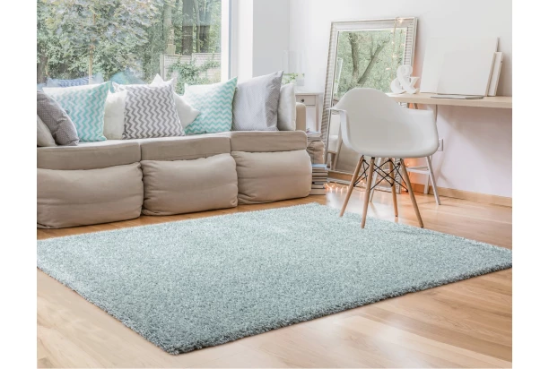 Koberec Just s dlhým vlasom je trendom dnešných bytov. Farba tyrkysová. Rozmer 160×230 cm.