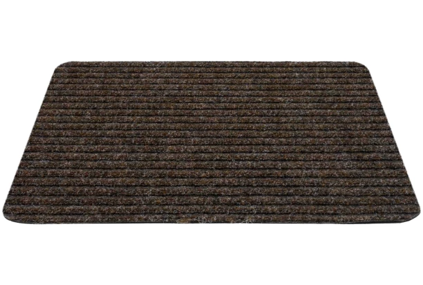 Hnedá rohožka o rozmere 40×60 cm v praktickom dizajne jemného prúžku s drážkami spoľahlivo odstráni nečistoty a vlhkosť z obuvi.