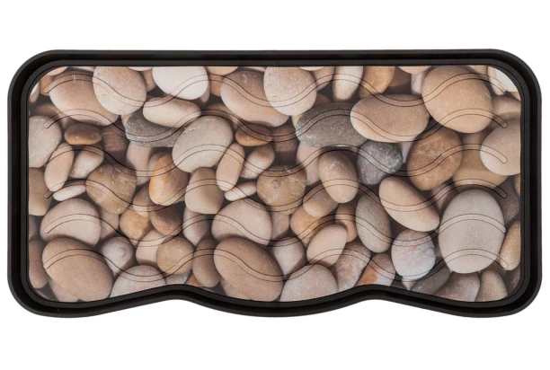 Odkvapkávač na topánky s motívom okruhliakov s rozmermi 75×38 cm je vyrobený z plastu pre veľmi ľahkú údržbu. Podložku oceníte najviac počas nepriaznivého počasia, počas obdobia dažďa alebo snehu. Ochráni podlahu predsiene pred nechcenými kalužami, vlhkosťou a špinou, ktorú si prinesiete na podrážkach z vonkajšieho prostredia. Odkvapkávač Vám ušetrí čas od zbytočného každodenného vytierania podlahy.