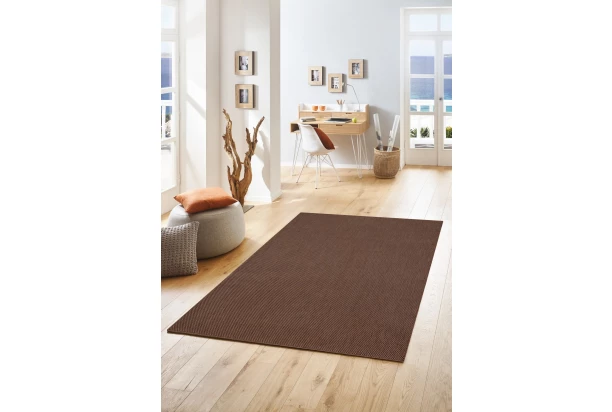 Elegantný koberec v hnedej farbe zaujme svojim jednoduchým, ale moderným vzhľadom. Koberec sa hodí do interiéru aj exteriéru. Rozmer 160×220 cm.