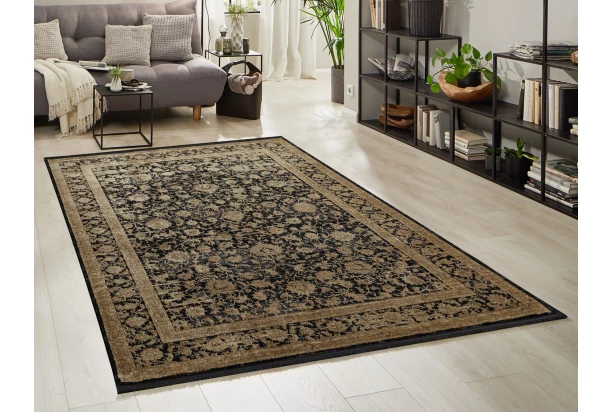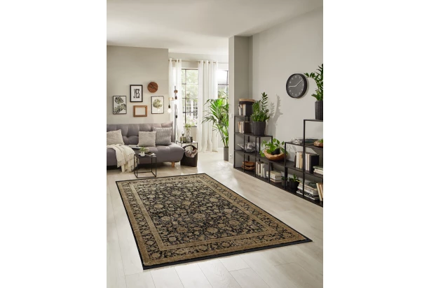 Atraktívny koberec o rozmere 160×230 cm prinesie do každého interiéru nádych orientu. Koberec v čierno-zlatej farbe je veľmi mäkký a hodí sa do obývacej izby, v ktorej navodí pokojnú a útulnú atmosféru.