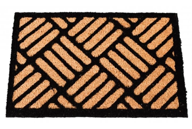 Štýlová hnedá rohožka z kokosového vlákna so zaujímavým vzorom skvele vynikne pred vchodovými dverami, kde vrelo uvíta každého hosťa. Rozmer 40×60 cm.