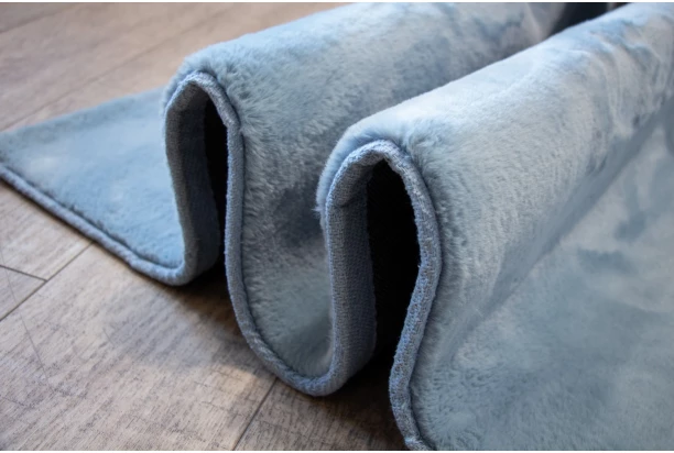 Moderný mäkučký koberec vo svetlo modrej farbe má vzhľad zajačej kožušiny a dodá Vašej obývacej izbe alebo spálni razom iný rozmer. Maznavý koberec s jemným, ale hustým vlasom, je veľmi príjemný na dotyk. Hebučký povrch ocenia aj Vaše chodidlá pri každom kontakte. Rozmer 80×150 cm.