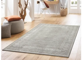 Moderný koberec v šedej farbe so vzorovaným okrajom a ľahko trblietavým efektom upúta pozornosť v každej domácnosti, do ktorej vnesie útulnosť a pohodlie. Rozmer 160×230 cm.