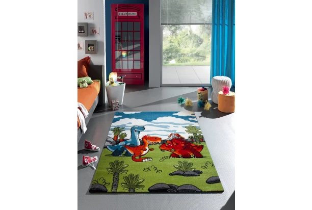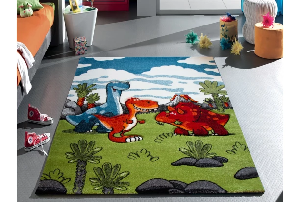 Koberec s motívom veselých dinosaurov poteší všetky deti a dovedie ich izbičku k dokonalosti. Rozmer 120×170 cm.