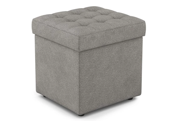 Štvorcový taburet o veľkosti 45×45 cm má mäkko polstrovaný sedák, pod ktorým nájdete praktický úložný priestor. Očalúnený látkou v odtieni šedo-béžová a doplnený výrazným prešitím.