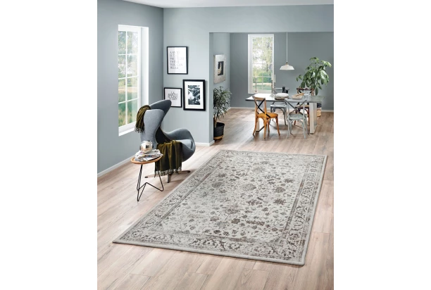 Orientálny koberec zdobený ornamentmi vytvárajúci 3D efekt očarí každú izbu. Koberec tiež zaujme svojim lesklým a hebkým povrchom a výškou hustoty vlasu, vďaka ktorej je koberec nadýchaný. Decentné svetlé krémové prevedenie rozjasní domácnosť a dobre sa kombinuje s tmavým nábytkom. Rozmer 120×170 cm.