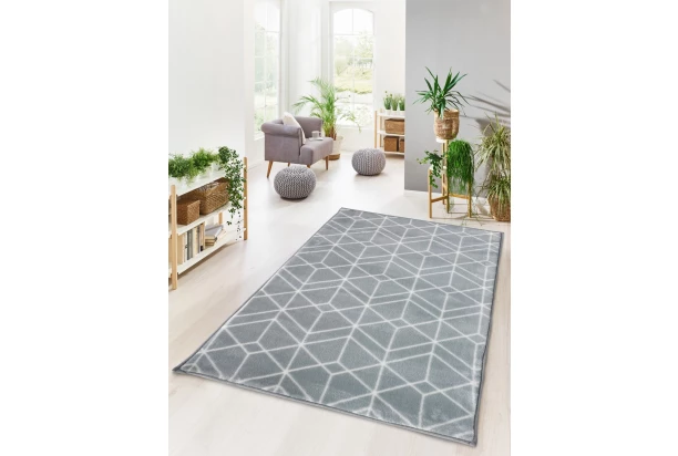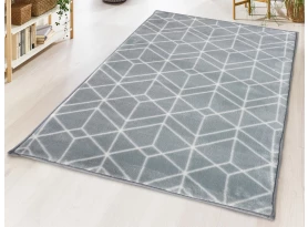 Strieborný koberec s grafickým vzorom s nízkym vlasom je mäkký a v izbách navodí útulnú atmosféru. Rozmer 120×160 cm.