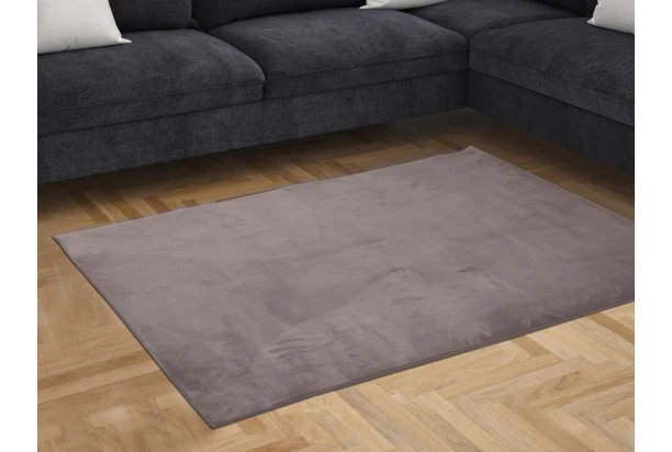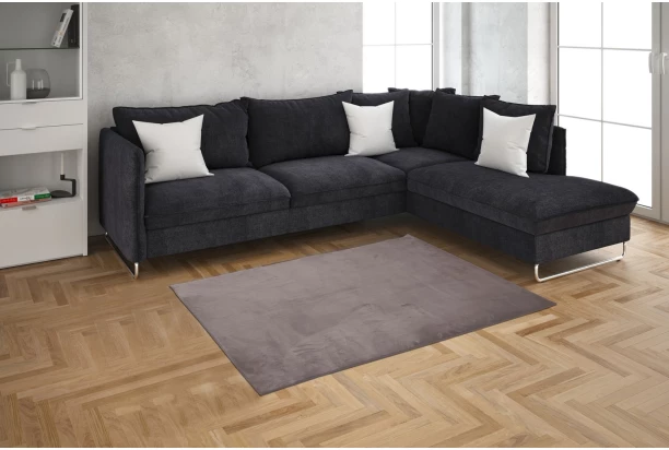 Jednofarebný strieborný koberec s rozmerom 60×110 cm s nízkym vlasom je mäkký a v izbách navodí útulnú atmosféru.