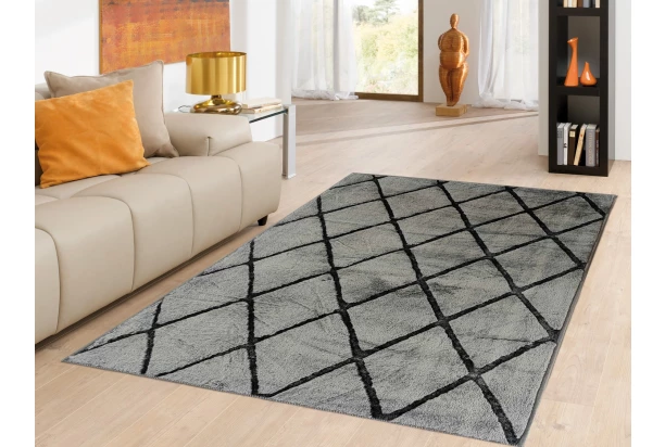 Šedý koberec s krásnymi kosoštvorcovými vzormi je skvelý doplnok do každého interiéru a dodá pocit luxusu. Imitácia pravej králičej kože je vyrobená z mäkkých vlákien, ktorá presvedčí svojou neuveriteľnou hebkosťou a jemnosťou. Vaše chodidlá sa tak pri každom kontakte s kobercom budú cítiť ako v bavlnke. Koberec sa tiež stane perfektným miestom na relaxáciu alebo hranie sa s deťmi. Rozmer 160×240 cm.