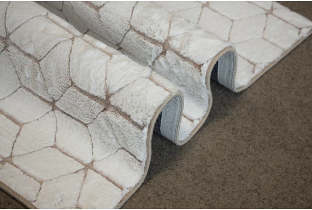 Béžový koberec s krásnymi geometrickými vzormi je skvelý doplnok do každého interiéru a dodá pocit luxusu. Imitácia pravej králičej kože je vyrobený z mäkkých vlákien, ktoré presvedčia svojou neuveriteľnou hebkosťou a jemnosťou. Vaše chodidlá sa tak pri každom kontakte s kobercom budú cítiť ako v bavlnke. Koberec sa stane perfektným miestom na relaxáciu alebo hranie sa s deťmi. Rozmer 120×160 cm.