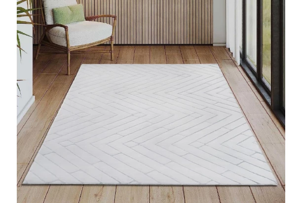 Koberec v svetlo šedom prevedení s klasickým a nadčasovým vzorom rybej kosti v tmavej farbe vytvára pútavý kontrast, ktorý dodáva priestoru živosť a dynamiku. S krátkym hebkým kožušinovým vlasom s rozmermi 115×160 cm je ideálnou voľbou ako dekoratívny prvok do obývacej izby, spálne či predsiene, prinášajúci do priestoru ako estetiku, tak aj komfort.