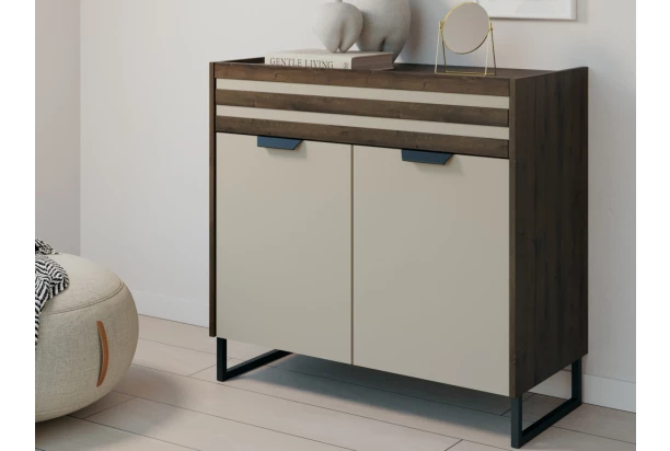 Skrinka so zásuvkou z kolekcie Barea – nábytok v modernom lamelovom dizajne ponúka praktickosť aj kvalitné spracovanie. Tento trendový nábytok v kombinácii béžových plôch s dubovým drevodekorom vytvára štýlové akcenty. Táto univerzálna skrinka má v hornej časti prakticky členitú dvojitú zásuvku a v dolnej časti úložný priestor s výškovo nastaviteľnou policou, ktorú je možné výškovo nastaviť podľa potreby. Komoda na stabilnej kovovej podnoži má šírku 96 cm a môžete ju využiť nielen v spálni, ale aj v obývačke, jedálni alebo napríklad predsieni, kde prakticky poslúži.