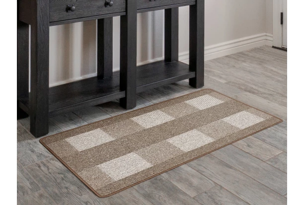 Štýlový behúň v béžovej farbe s rozmermi 67×120 cm sa skvelo hodí do akéhokoľvek interiéru, najmä do kuchyne či predsiene. Štvorcový vzor pridá vášmu domovu moderný šmrnc.