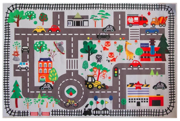 Tento jedinečný detský koberec s motívom cesty a koľají premení izbičku na miesto plné zábavy a tvorivého hrania. Vďaka praktickým rozmerom 80×120 cm sa skvele hodí do každého priestoru. Ideálne pre malých nadšencov do autíčok a vláčikov, ktorí milujú dobrodružstvo na cestách i železniciach!