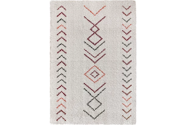 Nadýchaný biely koberec 80×150 cm zaujme svojim dizajnom, ktorý je inšpirovaný indiánskymi vzormi, dodá interiéru šmrnc a originalitu. Vďaka vysokému vlasu (cca 30 mm) koberec ponúka mimoriadne mäkký došľap. Je vyrobený z odolného polypropylénu technológiou frisé, čo mu pomáha zachovať si atraktívny vzhľad bez vyšliapaných miest aj pri každodennom používaní. Skvele sa hodí do obývacej izby, spálne alebo predsiene.