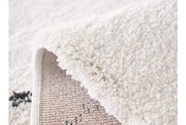 Nadýchaný koberec 80×150 cm s moderným marockým vzorom vnesie do vášho interiéru útulnosť a štýl. Koberec so strapcami, s vysokým vlasom (cca 30 mm) ponúka mäkký došľap a výrazný geometrický vzor v bielej farbe. Vďaka technológii frize z odolného polypropylénu si udrží atraktívny vzhľad bez vyšliapaných miest. Skvelá voľba do obývačky, spálne aj predsiene.