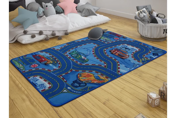 Modrý detský koberec s rozmermi 100×150 cm zaujme nápaditým dizajnom, ktorý je ideálny pre všetkých fanúšikov áut a poskytuje fantastickú hraciu plochu, na ktorej môžu deti pretekať so svojimi autami na trati. Vaše deti sa budú baviť celé hodiny, takže je skvelým doplnkom detskej izby.