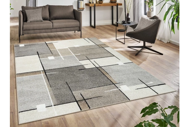 Moderný koberec o rozmere 120×160 cm s grafickým vzorom s krátkym vlasom je veľmi pútavý a vďaka béžovému prevedeniu aj univerzálny. Hodí sa do obývačky, detskej izby alebo napríklad do vstupnej časti.