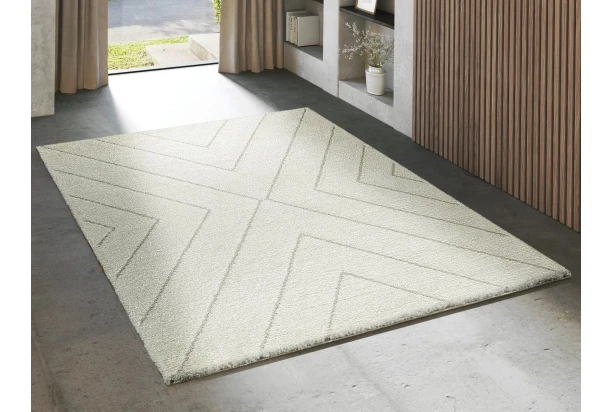 Koberec typu Shaggy v krémovej farbe s rozmerom 160×230 cm zaujme mäkkým vlasom vysokým 30 mm, ktorý poskytuje maximálne pohodlie a hebký pocit pri každom kroku. Moderný geometrický vzor dodá interiéru štýl a skvele sa hodí k rôznym typom nábytku aj dekorov.
