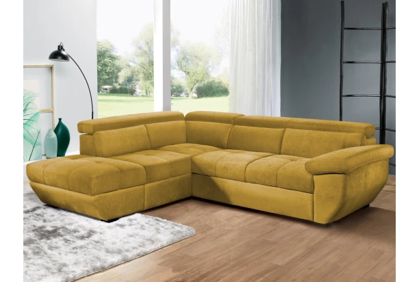 Nechajte sa inšpirovať zaujímavým dizajnom tvarov rohovej sedačky Speedway, ktorá v interiéri len tak nezovšednie. Očalúnená látkou v odtieni horčicovo žltá a s ľavým otomanom. Oceníte komfortne mäkké sedadlo aj polohovateľné chrbtové opierky – ľahko si tak môžete prispôsobiť štýl sedenia, podľa Vašej individuálnej potreby. Vrátane funkcie rozkladu a úložného priestoru.