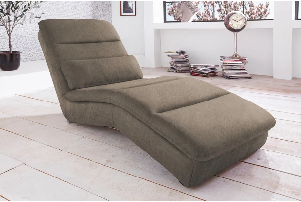 Štýlové relaxačné ležadlo. Zaoblený tvar kopírujúci krivky tela zaisťuje maximálne pohodlie pri odpočinku alebo pri sledovaní televízie. Poťah v sivo-hnedej látke, ktorá optikou pripomína kožu.