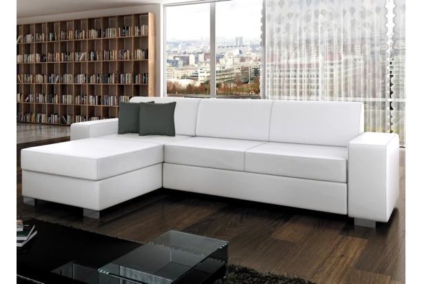 Priamočiare tvary bielej sedačky ľahko zapadnú do moderného bytu. Oceníte tiež funkciu rozkladu aj úložný priestor.