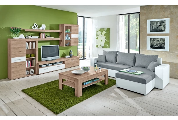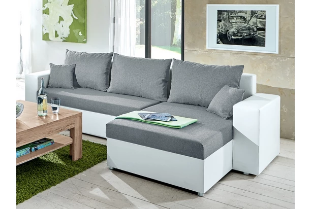 Rohová sedacia súprava v kompaktných rozmeroch, možné univerzálne zostaviť ako pravý/ľavý roh. Ľahko ju tak umiestnite do akejkoľvek miestnosti. Potiahnutá kombináciou bielej ekokože a svetlo šedej látky.