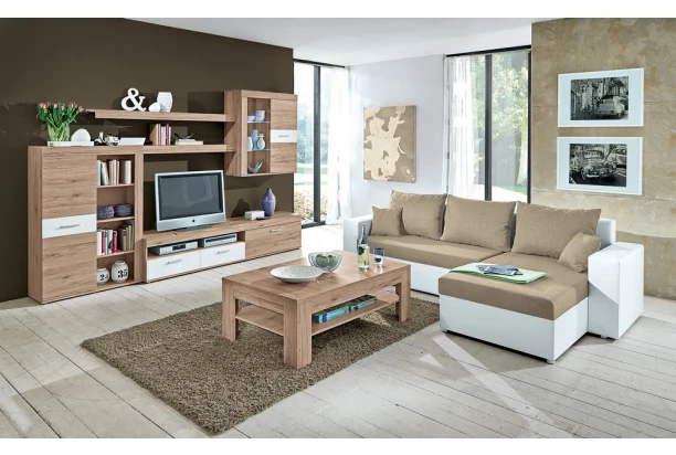 Rohová sedacia súprava v kompaktných rozmeroch, možné univerzálne zostaviť ako pravý/ľavý roh. Ľahko ju tak umiestnite do akejkoľvek miestnosti. Potiahnutá kombináciou bielej ekokože a béžovej látky.