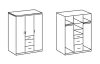 - pravý vnútorný blok: otvorený úložný priestor, 1 x závesná šatníková tyč z kovu, 1 x vnútorná polica