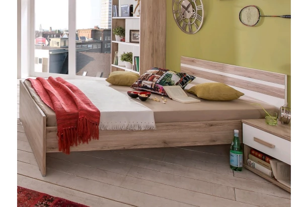 Posteľ o rozmere lôžka 120×200 cm z programu Cariba v kombinácii dekor dub san remo a bielej farby. Vhodný pre vybavenie akejkoľvek spálne aj detskej izby.