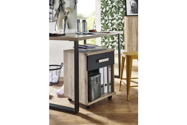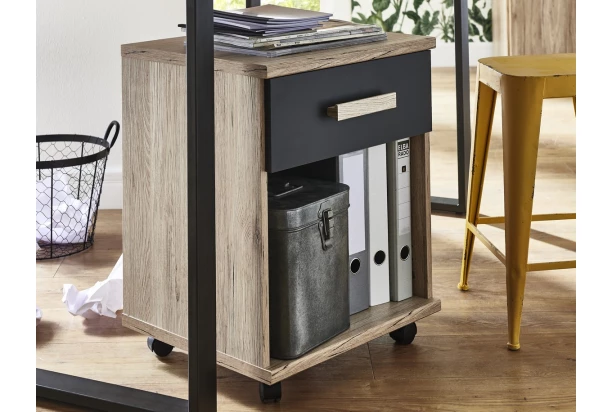 Úložný kontajner na kolieskach z programu Cariba v kombinácii dekoru dub san remo/grafitový. Vhodný pre vybavenie akejkoľvek pracovne aj detskej izby.