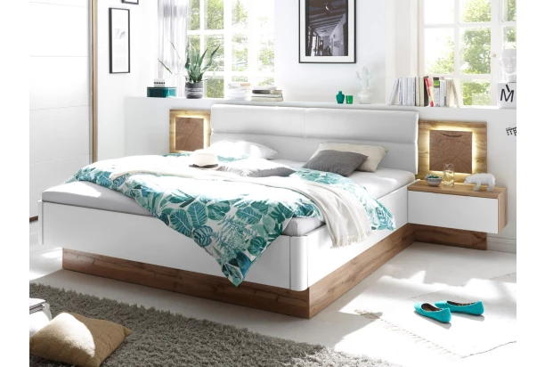 - komfortné vypolstrovanie zadného čela, moderne zabudované nočné stolíky a originálne riešené lampičky LED osvetlenie
