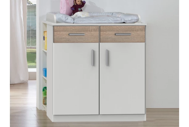 Komoda s prebaľovacím pultom Joker, biela/dub sonoma